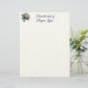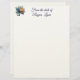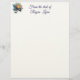 Elegant personalized letterhead featuring a delicate blue and orange watercolor flower in the top left corner. The words “From the desk of Rayna Lynn” appear in a graceful navy cursive font, centered at the top. The clean white background gives it a sophisticated and professional look, perfect for personal notes or business correspondence.