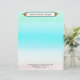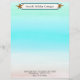 Diseñado para unas vacaciones vacacionales o para una casa, este membrete presenta un degradado de sombra verde claro a través de un bronceado de arena azul a pálida en el fondo. El nombre de la empresa es un óvalo bordeado de azul verdoso y flanqueado por pequeñas estrellas del mar. La dirección y el número de teléfono están en la parte inferior. La parte posterior es el mismo gradiente, menos el texto y los objetos. Fácilmente adaptable para una variedad de negocios, o uso personal.