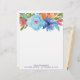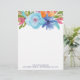 Este papel con membrete de moda y hermoso ofrece un ramo de la acuarela por completo de flores y de hojas en sombras del azul, de la turquesa, del rosa brillante, del naranja, y del verde.
