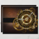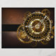 Antiguo, fantásticos relojes con engranajes de oro y latón sobre un fondo marrón y oxidado. Estilo Steampunk.
