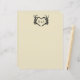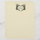 Este membrete personalizado es perfecto para incluir información adicional con invitaciones a la boda o para crear su propio menú personalizado o programa para el día de la boda. El papel es de color crema o marfil y presenta un ilustracion de manos esqueléticas en forma de corazón enmarcando las iniciales de la novia y el novio. El gráfico y las letras están en negro.