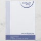 Una letra comercial moderna y limpia con un panel de efecto 3d semicírculo para ajustar el nombre de su empresa, se coloca a 1/2 pulgadas del borde derecho para equilibrar el texto de su carta. Se puede personalizar de diversas maneras. El pie de página, que está bordeado por una estrecha banda más ligera, tiene 1,5 pulgadas y contiene información de contacto de dirección y teléfono. El margen de sombra a la izquierda es de 1,37 pulgadas de ancho. Dado que los márgenes de la mayoría de los procesadores de texto tienen un valor predeterminado de 1,5 pulgadas, esto debería proporcionar un desplazamiento de 1/8 pulgadas cuando se escribe una letra utilizando valores predeterminados. Los detalles de la web y del correo electrónico se colocan a la derecha justo encima del pie de página.