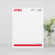 Un jefe moderno de una carta de negocios con un diseño subrayado en negrita adecuado para un nombre corto o rubricado de la empresa (aunque puede adaptarse para nombres más largos). Nombre de la empresa arriba a la izquierda con dirección, teléfono, fax, teléfono móvil y correo electrónico arreglados arriba a la izquierda. La dirección web/dominio se coloca a la derecha por encima de la línea de subrayado en la parte inferior.Este membrete puede ser personalizado de diferentes maneras,