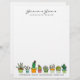 El diseño de la papelería personalizado con membrete incluye una hilera de pequeños cactus dibujados a mano y suculentos ilustraciones de macetas, perfecto para un negocio de jardinería o paisajismo o para quien disfrute de un poco de vegetación. Personalice este diseño de membrete con su información personal o de la empresa o sólo con su monograma de nombre para crear su propio papel único de un tipo. Haga clic en el botón Personalizar para personalizar de tipos de letra y colores.