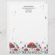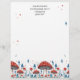 Papel personalizado bellamente brillante. Unas bonitas taburetes rojas rodeadas de flores azules bonitos crean el telón de fondo perfecto para sus cartas y notas escritas con atención.