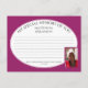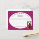 Modern MY SPECIAL MEMORY OF YOU Foto Comparte una tarjeta de memoria, que incluye una foto de PERSONALIZABLE y un verso de las escrituras cristianas. En lugar de un Libro de Condolencias, los clientes pueden escribir su memoria especial de la persona que ha pasado. El diseño muestra el panel oval con MI MEMORIA ESPECIAL DE USTED en texto curvo, que es PERSONALIZABLE, para que pueda añadir su propio encabezado. También puedes añadir una foto y el nombre del ser querido en la parte delantera. Hay líneas punteadas para ayudar a la gente a escribir, y se siguen al dorso. El esquema de color es PROFUNDAMENTE RASPBERRY. Estas tarjetas pueden ser entregadas en funerales a los asistentes, o incluidas con invitaciones y devueltas por aquellos que no pueden asistir pero que aún les encantaría compartir una memoria. Invitaciones coincidentes disponibles. También viene en otros colores.