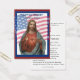 Recuerden a sus seres queridos con esta hermosa tarjeta de oración católica estadounidense conmemorativa del Sagrado Corazón de Jesús y la bandera estadounidense. Todo el texto puede ser personalizado.