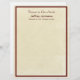 Este sencillo membrete minimalista de 8,5" x 11", en un patrón de crema afligida con borde de ladrillo y letras a juego, es personalizado y perfecto para llenar libros Memorial o Libros de Invitados al estilo de encuadernación. Esta página de papel de relleno del bloc de notas es fácil de personalizar: expresa tu propio sentimiento, cambia de nombre y elimina o modifica fechas. Tendrás que perforar agujeros para que encajen en tu encuadernador. Solicite tantas páginas como necesite. Todos los derechos reservados © 2014 Alan & Marcia Socolik