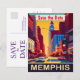 Invitación de Memphis para guardar la fecha al estilo vintage.