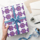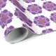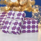 Gran patrón para envolver tus regalos de Hanukkah. Menorah púrpura sobre fondo blanco.
