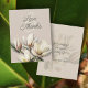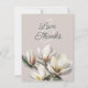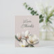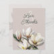 Flores de magnolia del sur gracias notas con mensajes personalizados. Color marrón rosado con magnolias blancas y texto verde muy oscuro. "Amor y agradecimiento" en la parte delantera de tarjetas planas de tamaño más pequeño. En la parte posterior, una imagen floral más ligera es el fondo de un mensaje y una firma. Se muestra en papel de color crudo que da un acabado texturado. Elija cualquier tipo de papel, y redondee las esquinas si lo desea.