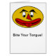 Una cara amarilla linda y divertida con grandes labios y lengua rojos. La nariz es un triángulo rojo. La cara también tiene grandes ojos blancos y negros y una frente cercana a la de los ojos de los unibromas. Un personaje de caricatura muy tonto. Las palabras predeterminadas de este diseño son "¡Cometa tu lengua!", pero el texto se puede personalizar según lo que quieras.