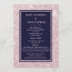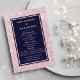 Un elegante menú de boda abstracto y chic de azul marino y brillo rosa falso . Este menú de boda moderno de azul marino y brillo rosa femenino es perfecto para cualquier chica glamorosa y sofisticada. Este diseño es perfecto para el evento de fiesta trendy y elegante. Diseña con tu propio mensaje e información. Todos los diseños se imprimen.
