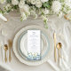 Las elegantes y polvorientas tarjetas de menú de la recepción de bodas azules, azules y blancas presentan un hermoso borde inferior de flores acuarelas y los detalles del menú están escritos en un clásico tipo de letra serif con un acento de escritura caligráfica. Personalice fácilmente esta tarjeta con su propia información utilizando la plantilla de texto. Diseñado para coordinar con mi elegante colección de bodas Juliette. No olvide explorar los otros elementos del paquete de invitados a la boda para crear un estilo elegante y coordinado. Para añadir texto o cambiar el posicionamiento o cambiar fuentes o colores de fuente, haga clic en "Personalizar" y "Editar usando la herramienta de diseño". Si necesita ayuda adicional para ajustar esta plantilla, póngase en contacto conmigo a través del sistema de mensajería de Zazzle. Por favor tenga en cuenta que yo creo los diseños, pero todos los trabajos de impresión y envío son realizados por Zazzle en sus instalaciones de producción, así que si hay algún problema con su pedido, por favor contacte con su servicio de atención al cliente al 1-888-892-9953 o https://www.zazzle.com/about/ask.
