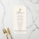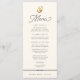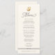 El diseño rústico para bodas campestres, ecuestres o ranchos presenta letras marrones ciruela oscuro con acentos de escritura, con "Menú" y sus opciones gastronómicas. Un par de herraduras doradas de acuarela en la parte superior y detalles de cuerda anudada a lo largo de la parte inferior completan el aspecto de este dulce diseño de boda rústica para amantes de los caballos.