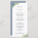 Un azul turbio, una vegetación floral botánica amarilla y acuarela. Plantilla de tipografía moderna y de moda con varias líneas para los elementos de menú personalizado. Se puede personalizar el color de embalaje que aparece en azul polvoriento.