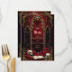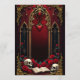 Amor eterno en las sombras de la oscuridad, en estilo gótico. El punto focal es una majestuosa arcada gótica decorada con delicados detalles dorados y brillando sobre un fondo rojo profundo. Las dos elegantes columnas que rodean la arcada le dan un toque sublime al diseño y resaltan el diseño opulento. El corazón colgando suavemente de la arcada dibuja el ojo y está enmarcado por un efecto sanguíneo goteo,