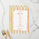 Añada un toque de encanto a su recepción con esta magnífica tarjeta de menú boda Amore & Aranci. Con franjas naranjas pintadas a mano, un borde ondulado que recuerda a cinta o cuerda, y una tipografía alegre en tonos naranjas quemados, este diseño combina elegancia con un toque divertido. Perfecto para bodas con temática cítrica, celebraciones toscanas o cualquier evento con una paleta de colores cálida y vibrante. Personalice cada sección (desde entrantes y postres hasta postres) con sus deliciosos menús. La disposición vertical y los detalles en tonos pálidos aportan un toque artesanal a medida que se completa con una decoración rústica, caprichosa o de inspiración mediterránea de inspiración boda. Características del producto: Texto de personalizable completo para sus cursos de boda Cuenta con un fondo de rayas pintadas a mano y un naranja de borde capilar de calidad profesional Ideal para bodas de verano, temas de cítricos, o eventos de destino en Italia o California Keywords: menú boda naranja, menú boda capilar, decoración boda de cítricos, menú estripe pintado a mano, carta de pescar, papelería casera rústica. Artículos de papel naranja, colección Amore e Aranci, temática sobre el tema de Tuscan・, menú boda Añadir la redacción de su・a este diseño usando los cuadros "Editar esta plantilla de diseño" en el lado derecho del artículo, o hacer clic en el botón azul "・it" (El boda del texto) para organizar el texto, cambiar las fuentes y los colores y también añadir información o imágenes adicionales a este diseño. Si necesita algún elemento de coordinación, (gracias a las tarjetas, etc.) por favor contáctame para un pedido de personalizado. ****Por orden de personalizado, no coloque esta mercancía en su carrito. En su lugar, envíeme su solicitud por correo electrónico a lauralise@iyhtvdesigns.com Una vez que el artículo esté disponible, se le enviará por correo electrónico un enlace a su mercancía. Puede usar ese enlace para realizar su pedido. Por favor, espere hasta 48 horas.