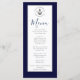Menú Ancla floral de temática náutica Boda de fondo azul marino y blanco