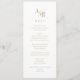 Esta carta clásica de boda minimalista de boho dorado y blanco del Andrea Collection es perfecta para un boda moderno. El diseño atemporal y elegante presenta un lujoso monograma de escritura en oro y blanco con un toque industrial único. Este menú se puede utilizar para la recepción de bodas, la cena de ensayo o cualquier evento.
