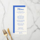 Un colorido menú retro funky moderno para la cena boda amarillo melocotón. Que presenta el diseño de plantillas de moda de fondo blanco lechoso boho y tipografía azul brillante y menú escrito a mano en azul. Y fondo verde claro. Perfecto y a juego con la suite.