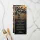 Este bonito menú le dará un toque de elegancia a la recepción de bodas. Presenta un diseño rústico y elegante con un árbol de otoño o otoño adornado con cuerdas de luces blancas. Hay espacio para los nombres de la pareja y la fecha del boda, y el texto es completamente personalizable. Ideal para una recepción al aire libre o en el patio trasero.