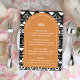 Este diseño de arco de boda con patrón boho complementa perfectamente la vibra libre y bohemio de las bodas. Este diseño geométrico en negro y blanco Boho es un estilo trendy que combina la simplicidad del negro y blanco con los patrones intrincados de formas geométricas. El contraste entre los colores negro y blanco crea un look audaz y llamativo, mientras que las formas geométricas añaden un sentido de estructura y orden. El uso de tonos cálidos y terrosos como el dorado, naranja quemado, verde y coral añade al estética boho. Este diseño de arco de boda boho es una excelente manera de infundir personalidad y encanto en tu día especial. Ya sea utilizado como letrero de bienvenida, decoración de mesa o como diseño principal en tus invitaciones de boda, este diseño boho es una elección versátil y elegante para la papelería, decoración y favores de tu