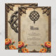 Arte celta y esplendor floral en tonos cálidos. Marco elegante y decorativo que combina armoniosamente elementos celtas y florales. En el centro del cuadro superior se encuentra un patrón de nudos celtas complejo y simétrico. Más allá del patrón de nudos centrales, un patrón de cruz celta más grande y sutilmente descolorido se extiende al fondo. Agrega profundidad y una capa adicional de simbolismo cultural a la imagen general sin alejarse del nudo principal.
