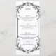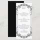 Menú de boda con diseño simple en blanco y negro. Un divisor ornamental en la parte superior e inferior contiene los detalles de su menú. Personalice con su propia información. Si necesita ayuda, no dude en ponerse en contacto conmigo.