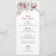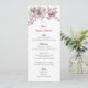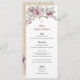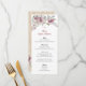 Flores de malva y hojas acentúan este menú con una parte posterior de madera natural. Una cruz simple se coloca en la parte superior. Visita nuestra tienda hermana Pixieprints.com para conocer todas tus necesidades de invitación.