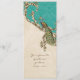 Esta tarjeta elegante y sofisticada del menú de la cena de boda mezcla el mejor de la tradición y la frescura del contemporáneo. Que mezcla el arte del vintage los elementos y trabajo de arte contemporáneo de la acuarela pintados a mano por Audrey Jeanne Roberts da una calidad hermosa y intemporal a esta invitación. Esta invitación elegante y sofisticada mezcla el mejor de la tradición y la frescura del contemporáneo. Que mezcla el arte del vintage los elementos y trabajo de arte contemporáneo de la acuarela pintados a mano por Audrey Jeanne Roberts da una calidad hermosa y intemporal a esta invitación. Restos majestuosos de un pavo real sobre remolinos grabados al agua fuerte elegantes y mirada hacia un damasco pintado a mano muy sutil con detrás azulverde del pavo real de él. También disponible en una versión de encargo del color donde usted puede poner cualquier color donde ahora está el azul verde azulado. USTED PUEDE SER QUE TAMBIÉN GOCE: