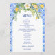 Menú Azulejo Mediterráneo Azul Limón Boho Boda Italiana