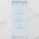 Diseño elegante del menú del fiesta de recepción nupcial con los falsos azules claros del confeti del purpurina y texto de plata del personalizado. Impresione su familia y amigos con este diseño elegante y moderno.