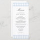 Añada un toque final a su ducha de bebé o evento con este elegante menú de ducha de bebé de gingham azul.