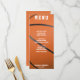 menú de la recepción de bodas de baloncesto en naranja, blanco y negro. Personalízalo con tu fecha de aniversario de boda, nombres y lista de comidas. Ideal para deportistas o aficionados.