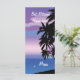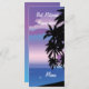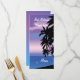 Océano tropical nocturno. Hermosas palmeras en primer plano, cielo azul y violeta con luna llena sobre el océano. ...