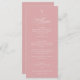 El menú de bautismo de calligrafía cruzada simple rosa presenta una delicada cruz moderna, combinada con un estilo moderno y un hermoso guión de caligrafía.