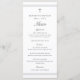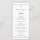 La elegante carta clásica del menú del bautismo es moderna y limpia, con rayas grises pastel y una cruz mínima con texto gris editable.