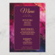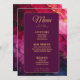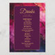Presentamos la carta de la colección "Celestial Elegance: The Marble Symphony", una sofisticada y refinada adición a la recepción de tu boda. En la parte delantera, la tarjeta presenta un impresionante fondo de mármol con una elegante decoración en tonos suaves grises y blancos, creando un lujoso lienzo. En la parte superior, el título "Menú" aparece en una tipografía atrevida y elegante, marcando el tono de una experiencia gastronómica de buen gusto. Los nombres de la pareja y la fecha del boda aparecen de forma destacada, añadiendo un toque personal al diseño. Debajo de la cabecera, se presenta una cuidada selección de platos, entre ellos aperitivos, entrantes y postres, cada uno de los cuales se describe con cuidado para reflejar las preferencias de la pareja y las propuestas culinarias de la noche. La tarjeta, inclinada al revés, continúa con un fondo morado oscuro adornado con las mismas obras de arte de mármol, creando una presentación impecable y sofisticada. En la parte superior, la leyenda "Bebidas" aparece con elegancia, invitando a los huéspedes a explorar la selección de bebidas disponibles. A continuación, se ofrece una carta de bebidas cuidadosamente elaborada, que va desde cócteles de autor hasta vinos de calidad y refrescantes platos sin alcohol, cada uno de los cuales se describe para que los clientes se sientan más satisfechos. Esta carta, elaborada con la intemporal belleza de la colección "Celestial Elegance: The Marble Symphony", combina la sofisticación moderna con el encanto celeste, asegurando que cada detalle de su celebración boda esté impregnado de elegancia. Esta carta invita a los huéspedes a saborear las delicias culinarias de su día especial mientras reflejan el tema refinado y celeste que define su celebración.