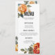 Presentamos la delgada carta del menú de "Marble Dreams: Naranja Rosa Elegance Collection", una novedad y elegancia en la recepción de tu boda. En la parte delantera de la tarjeta se muestra con gracia el título "Menú". Acompañado de los nombres de la pareja y la fecha del boda, esto le da un toque personal al diseño. Debajo de la cabecera, se presenta una cuidada selección de comidas, cada una con una meticulosa atención a los detalles. Desde aperitivos hasta entrantes y postres, los huéspedes podrán disfrutar de un viaje culinario que refleja los gustos y preferencias de la pareja. Volando hacia el reverso, continúa la encantadora obra de rosas naranjas de la colección "Sueños de Mármol: Rosa Naranja Elegance", creando una presentación perfecta. En la parte superior de la tarjeta, en este marco de elegantes flores, se muestra la leyenda "Bebidas", seguida de un encantador mensaje de personalizable que invita a los huéspedes a disfrutar de la celebración y de las bebidas cuidadosamente seleccionadas. Debajo de este sincero mensaje, se presenta una selección de bebidas, que van desde cócteles de autor hasta vinos de calidad y refrescantes opciones sin alcohol. Cada bebida se describe con cuidado, asegurando que los huéspedes puedan elegir con facilidad y anticipación. Los nombres de la pareja se muestran una vez más con elegancia, añadiendo un toque personal y acogedor a la tarjeta. Elaborado con amor e inspirado en la belleza intemporal de la "Colección de Sueños de Mármol: Rosa de Elegancia Naranja", este menú combinado delgado y tarjeta de bebida le da un toque de elegancia y sofisticación a su celebración boda, invitando a los huéspedes a disfrutar de cada momento de este día especial.
