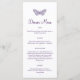 Una delicada mariposa morada acentúa este menú boda. Esto es parte de la colección completa de bodas Besos de mariposa púrpura. Se coordina fácilmente con la colección de bodas Flutter o la colección Butterfly Kisses.