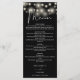 This elegant black and white wedding menu, featuring pretty string lights, can be personalized with your information in chic typography with your monogram initials on the reverse. Designed by Thisisnotme©