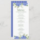 Esta moda y el elegante menú boda hidrangea azul son perfectos para tu recepción nupcial. Tiene secciones para el primer plato, el segundo plato, 3 entradas y postre. Las plantillas son muy fáciles de usar, por lo que hacer esto propio tomará sólo uno o dos minutos. En la recepción, podrás elegir una de las opciones más interesantes para los clientes, a medida que avanza la recepción.
