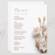 This minimalist wedding menu card features blush 3D textured boho wildflowers and an elegant handwritten script on a white background.