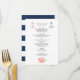 Menú de boda marinero de moda con anclas florales acuosas y rayas marinas.
