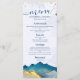 Plantillas de tarjetas de rack de menú boda - Paisajes de las montañas de color azul verde y Relieve metalizado dorado falso. Estos Diseños Pueden Ser Personalizados Para Su Ocasión Especial Y Serían Perfectos Para Su Boda, Ducha De Novias, Partido De Compromiso, Fiesta De Cumpleaños Y Muchas Más Ocasiones Especiales.