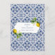 Menú boda de limón mediterráneo de Amalfi Coast Italy, con azulejos azules y limones. Puede cambiar todos los textos, borrar algunos según sea necesario. Bellissima Italia © Puedes personalizar con tus nombres y textos. Puede cambiar el color del texto y el estilo de fuente utilizando la opción personalizar it. NOTA: los colores mostrados en línea pueden variar ligeramente respecto al producto real.