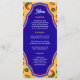 Las mesas de la recepción se iluminan con esta carta mexicana floral, adornada con flores pintadas a mano rojas, amarillas y verdes. Con un alegre fondo amarillo, el audaz marco floral añade un toque festivo y artístico, inspirado en el diseño tradicional mexicano. Perfecto para las fiestas o los bodas de verano, esta carta presenta su selección culinaria con mucho gusto, mientras que la decoración de la mesa es de colores y encanto. Una mezcla alegre de cultura y elegancia, es un detalle impresionante que a sus huéspedes les encantará.