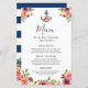 Volante De Menú Boda Azul Náutico De La Marina Floral.