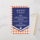 Menú de bodas de otoño con colores fuertes: azul, naranja y blanco.